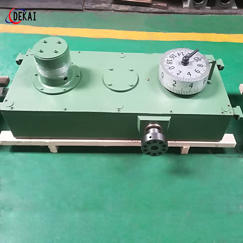 軋機壓下二次包絡減速機,內部蝸輪蝸桿采用平面二次包絡技術,一種新型的傳動裝置,其承載能力大,傳動效率高,結構緊湊,合理,使用壽命長,外形精美。特別適用于大型鋼廠的各種連鑄機械。