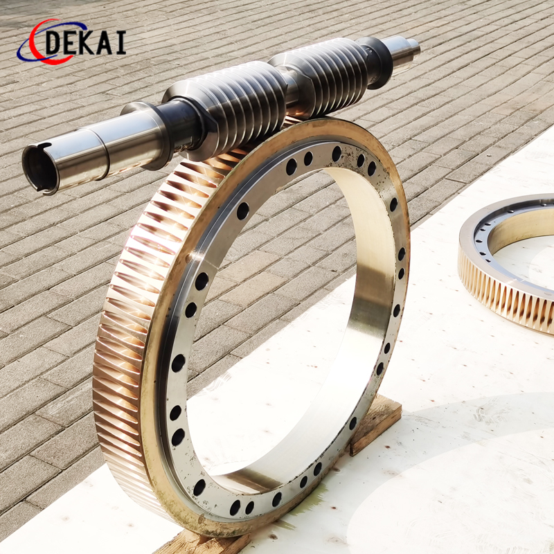 蝸輪系統(tǒng):材質(zhì):蝸輪特殊高強(qiáng)力鋁青銅合金;蝸桿:38CrMoAl合金鋼,正常化后滲碳HRC60以上。