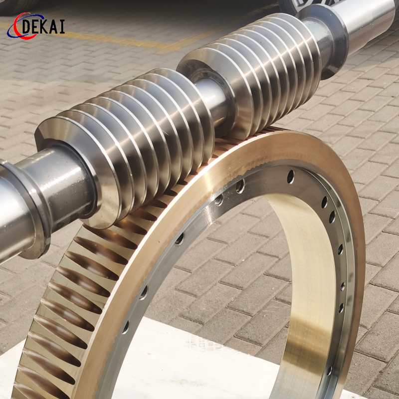 精密雙導(dǎo)程蝸桿副的優(yōu)點(diǎn):分度精度高,側(cè)隙可調(diào)整至0.01~0.03Mmm;齒面接觸穩(wěn),不會(huì)改變中心距。調(diào)整標(biāo)準(zhǔn),方便可靠。裝配靈活,裝配時(shí),用調(diào)整環(huán)來獲得合適的嚙合側(cè)隙。使用中如果因?yàn)槟p導(dǎo)致傳動(dòng)間隙增大,只要調(diào)整一下蝸桿的軸向位置,可以使蝸桿蝸輪傳動(dòng)副恢復(fù)到原來的精度,不需要更換新的蝸桿,蝸輪,比較實(shí)用。蝸桿材質(zhì)采用40Cr,42CrMo、38CrMoAl合金鋼。蝸桿采用錫青銅ZCuSn10Pb1離心澆鑄,具有高強(qiáng)度耐磨性。