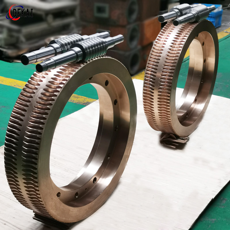 分度精度高,側隙可調整至0.01~0.03Mmm;齒面接觸穩(wěn),不會改變中心距。調整標準,方便可靠。裝配靈活,裝配時,用調整環(huán)來獲得合適的嚙合側隙。使用中如果因為磨損導致傳動間隙增大,只要調整一下蝸桿的軸向位置,可以使蝸桿蝸輪傳動副恢復到原來的精度,不需要更換新的蝸桿,蝸輪,比較實用。蝸桿材質采用40Cr,42CrMo、38CrMoAl合金鋼。蝸桿采用錫青銅ZCuSn10Pb1離心澆鑄,具有高強度耐磨性。