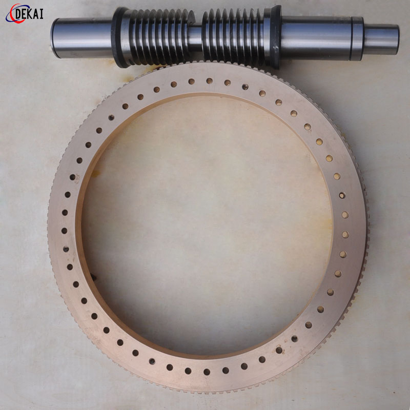 精密雙導程蝸桿副的優點:分度精度高,側隙可調整至0.01~0.03mm;齒面接觸穩,不會改變中心距;調整準確,方便可靠;裝配靈活,裝配時,用調整環來獲得合適的嚙合側隙;使用中如果因為磨損導致傳動間隙增大,只要調整一下蝸桿的軸向位置,可以使蝸桿蝸輪傳動副恢復到原來的精度,不需要更換新的蝸桿蝸輪。蝸桿-材質采用40Cr、42CrMo、38CrMoAl合金鋼;蝸輪-采用錫青銅ZCuSn10Pb1離心澆鑄,具有高強度耐磨性。