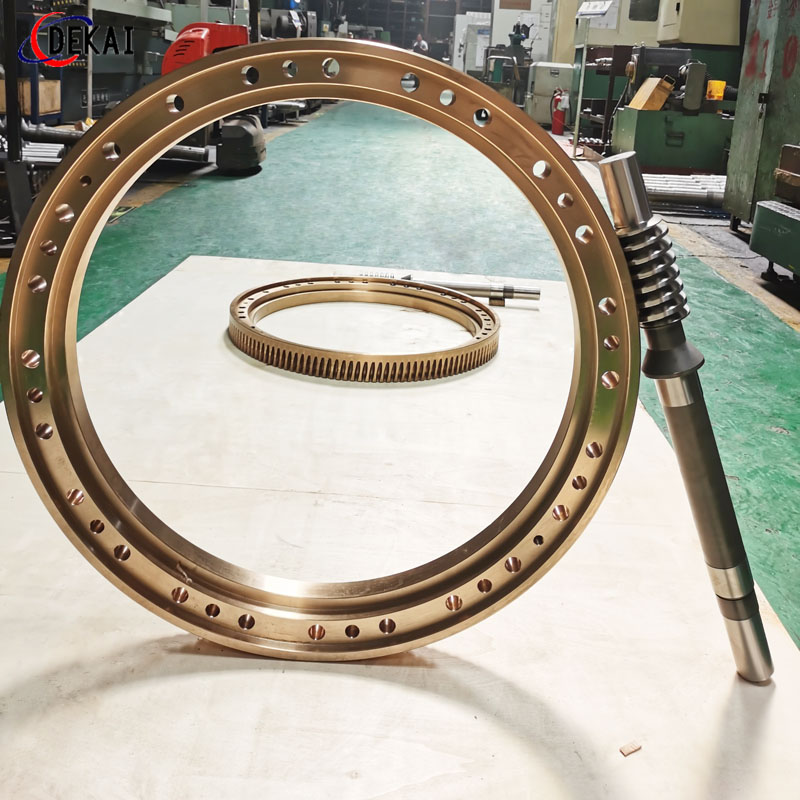 通常,調整蝸桿蝸輪側隙的方法是改變其組裝距離,組裝后若想改變組裝距離,需要對齒輪箱等做大幅度的修正作業。但是,如果使用雙導程蝸桿蝸輪的話,可以不改變齒輪箱的組裝距離即可調整側隙,所以可使組裝及維修變得非常方便。因為雙導程蝸桿蝸輪是特殊的產品,采用時先閱讀德凱使用說明書。