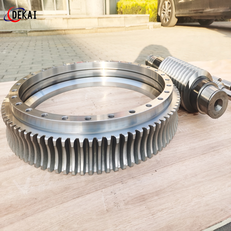 蝸輪系統:材質:蝸輪特殊高強力鋁青銅合金;蝸桿:38CrMoAl合金鋼,正常化后滲碳HRC60以上。