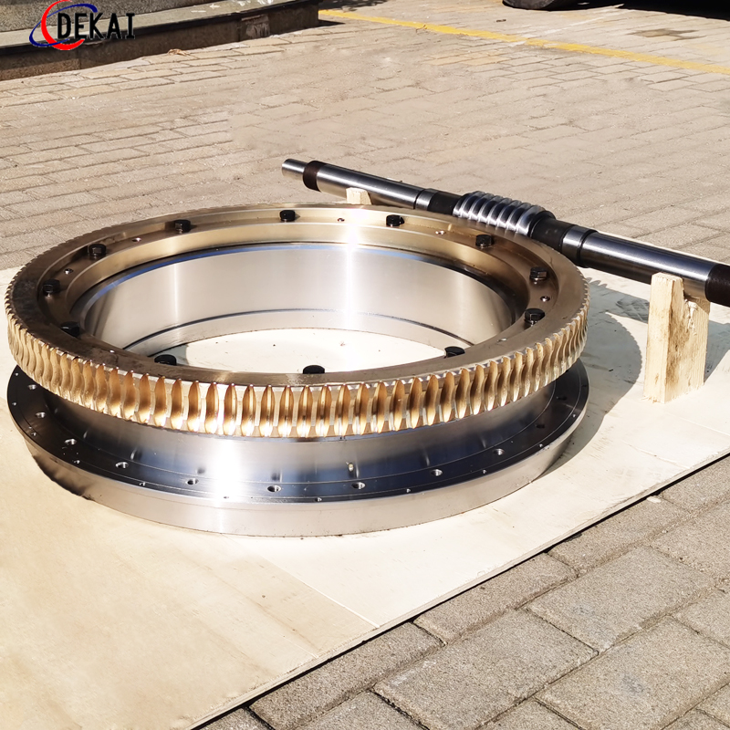 蝸輪系統:材質:蝸輪特殊高強力鋁青銅合金;蝸桿:38CrMoAl合金鋼,正常化后滲碳HRC60以上。