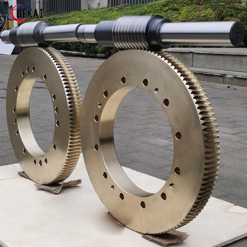 蝸輪系統:材質:蝸輪特殊高強力鋁青銅合金;蝸桿:38CrMoAl合金鋼,正常化后滲碳HRC60以上。