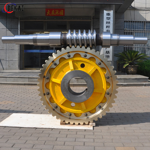平面二次包絡蝸桿副的特征:蝸桿采用合金鋼40Cr、42CrMo、 38CrMoA1調(diào)質(zhì)及離子氮化處理,齒面經(jīng)硬化處理后,磨制而成,齒面硬度高(HRC ≥58)粗糙度低(Ra≥0. 8)齒形精度高,表面光滑。