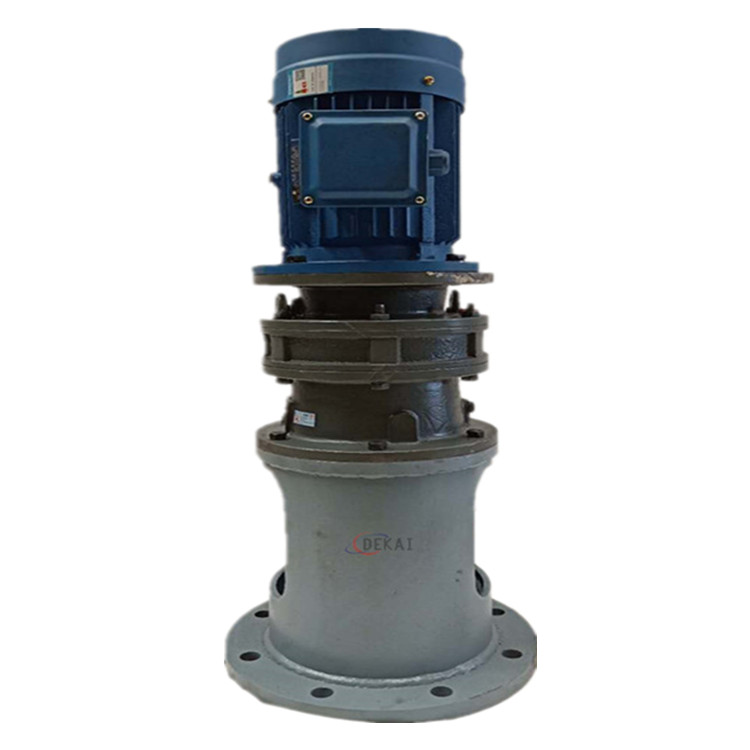 機架的選用:原則上是根據(jù)減速機輸出軸徑的大小來確定機架型號,只要接口形式及尺寸相符,減速機的輸出軸大小在一定范圍內(nèi)可以對機架型號作上下浮動。若選用帶接板機架,減速機的安裝尺寸與機架不符時,在一定范圍內(nèi)我廠可以調(diào)整接板與減速機的聯(lián)接,滿足用戶要求。無支點機架:機架本身無軸的支撐點,攪拌軸是以減速機輸出軸的兩個支承軸承為受力支點,可用于傳遞小功率、不受或受較小軸向負(fù)荷、攪拌不大強烈的攪拌裝置。攪拌軸與減速機的聯(lián)接必須用剛性聯(lián)軸器,特別是以JQ型夾克聯(lián)軸器或SF型三分式聯(lián)軸器為佳。單支點機架:具備下列條件之一者,建議選用但支點機架;a、攪拌容器設(shè)置底軸承,作為一個受力支點。b、軸封本體設(shè)有軸承(包括剛性襯套),作為一受力支點(受力程度按軸封要求規(guī)定)。c、攪拌容器內(nèi),軸中部設(shè)有導(dǎo)向軸承,作為一個受力支點(中間軸承)。當(dāng)具備上述條件的攪拌軸,在選用單支點機架時,攪拌軸與減速機之間的聯(lián)軸器須選用彈性聯(lián)軸器。在實際應(yīng)用中常用剛性聯(lián)軸器代替彈性聯(lián)軸器聯(lián)接攪拌軸與減速機出軸,取消底軸承或中間軸承等支點。這樣使用,簡化了單支點機架的應(yīng)用條件,但只適宜于攪拌不強烈、功率小、對軸承負(fù)荷較小的場合。則必須對支點的軸承結(jié)構(gòu)進(jìn)行變動,采用帶緊定套的錐孔調(diào)心滾子軸承,或者取掉夾殼聯(lián)軸器中的懸吊環(huán),使攪拌軸的軸向位置有適當(dāng)調(diào)整的余地。